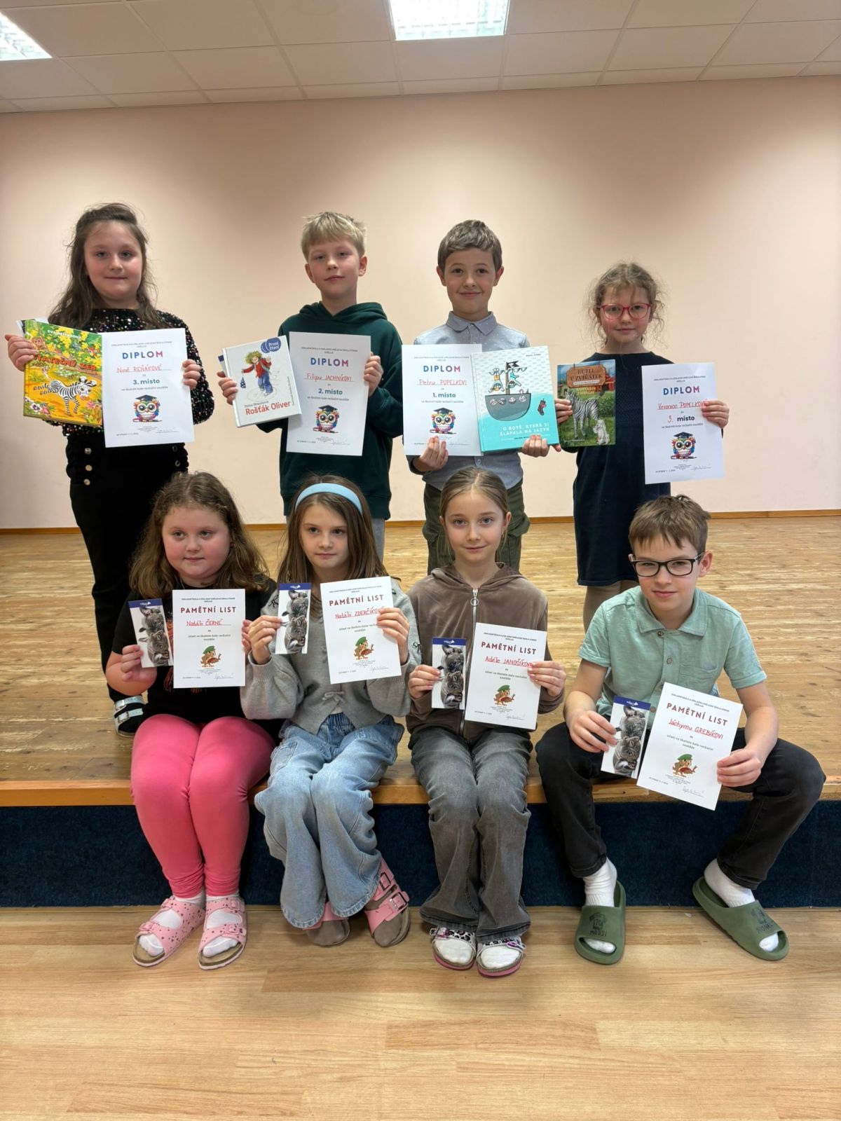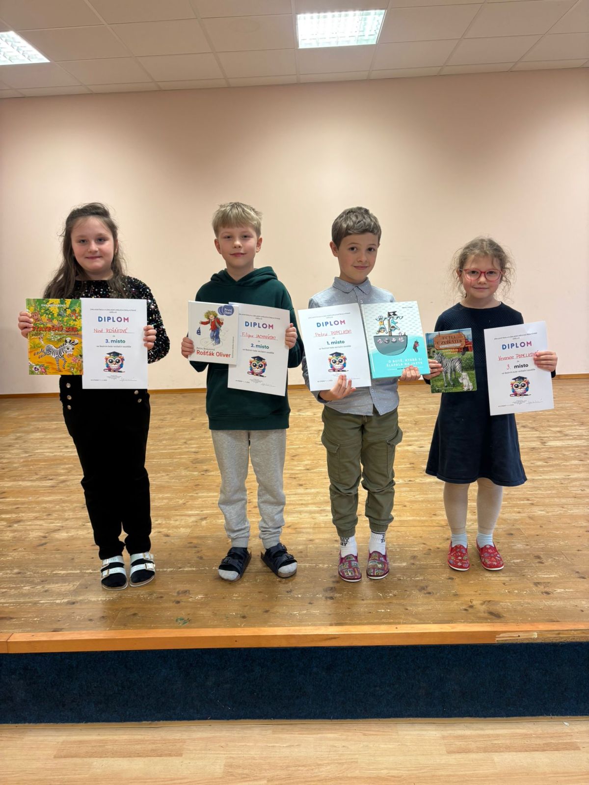 Ve středu proběhlo v multifunkčním sále školní kolo recitační soutěže. Zúčastnilo se ho 31 výherců třídních kol. Konkurence byla velká a rozhodování poroty jako každý rok složité. Jak se dětem dařilo, se můžete podívat v níže uvedené výsledkové listině i ve fotogalerii. Všem dětem děkujeme za účast, těm nejúspěšnějším gratulujeme a držíme palce v postupovém - okrskovém kole, které je naplánováno na 18. 2. 2026 v uherskobrodské Knihovně Františka Kožíka,